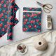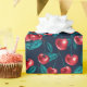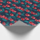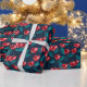 Presente Cerejas vermelhas em papel de embalagem azul escur