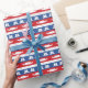 Inspirado por dançarinos em mostras de meio expediente do futebol de Texas, este papel - com chapéus, botas e estrelas em cores patrióticas - é o envolvimento perfeito para seu presente a sua menina favorita da dança-broca.