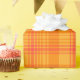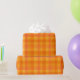Um rolo de Giftwrap, com um padrão brilhante de xadrez em tons de Marigold Orange e Red. Parte da coleção Posh & Painterly 'Marigold Medley', este padrão irá ajustado qualquer um dos rolos de papel de embrulho.