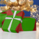 Presente Cintos vermelhos sobre o papel de enrolamento verd