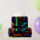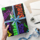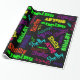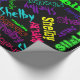 Papel de embrulho preto com estalo da colagem de néon elétrica do nome da cor no verde limão, no azul do Aqua, no amarelo, na laranja, no vermelho, no roxo, no rosa quente e no azul vívido. Faça alguém sentir muito especial com papel de envolvimento personalizado com todos os nomes que você escolher. Apenas datilografe seu nome. O clique personaliza, edita para mudar a cor do fundo. O modelo do nome simples ou adiciona fotos para personalizar-se. Aniversário feito sob encomenda, parabéns ou algum dia, legal, moderno, animador, feliz, divertimento e festivo.
