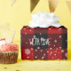 Texto Branco COM AMOR com flocos de neve em fundo de xadrez de búfalo vermelho e preto. O texto pode ser editado.