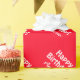 Papel personalizado personalizado de empacotamento de aniversário. Adicione seu próprio nome e mensagem como Feliz Aniversário. Uma ideia bonita e personalizável para comemorações de festas. Adequado para homens, mulheres e crianças (rapazes e raparigas). Cores de fundo e anotação personalizáveis. Um exemplo vermelho e branco de cereja. Modelo de tipografia de tendências. Embalagem de presente divertida com o nome de criança ou adulto. Personalizar para pai, pai, mãe, mãe, filha, filho, neto, amigos, família, etc.