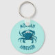 Um caranguejo azul bonito personalizou a cadeia-chave da casa de praia. Personalizar com nome ou duas linhas.