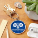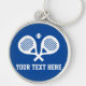 Presente de chaveiro personalizado do logotipo da raquete redonda para cadel player. Adicione seu próprio texto como um nome, slogan engraçado, citação, piada, dizendo. Festa de aniversário bonita para homens, mulheres e crianças. (rapaz ou rapariga), correntes-chave personalizadas com raquetes cruzadas e design de logótipo da bola. Cor de fundo azul ou personalizada.