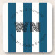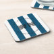 porta copos monográfica com logotipo de empresa distribuído, fonte de texto de faixa branca azul em círculo com um monograma inicial em prenda central para empresas