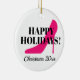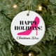 Presente de enfeite de árvore de Natal, cor de rosa. Personalize com texto personalizado ou foto atrás.