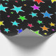 Este divertimento, características de design coloridos um teste padrão das formas da estrela de vários tamanhos e coloridas uma variedade de cores em um fundo preto.