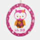 Se você tem um bebê novo na maneira ou em sua casa, esta coruja retro cor-de-rosa querida do Sis de Lil é uma lembrança especial para ela.  Beira cor-de-rosa e branca do floco de neve nesta versão um tomado partido de nosso presente do ornamento com uma coruja retro querida do rosa, a marrom e a alaranjada do olhar de buzina.  Nós temos um ornamento grande de harmonização do Sis em nossa loja também.