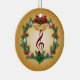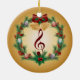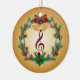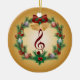 Este ornamento bonito da música do Natal tem a grinalda do feriado com sinal das notas musicais e do clef de triplo, e faz um grande stuffer do presente ou da meia para o estudante da música ou o professor de música, músico profissional ou o melómano. Design frente e verso.