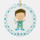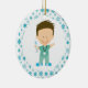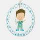 O personagem de desenho animado masculino engraçado do doutor, da enfermeira ou do interno do design pequeno das batatas vem em uns enfeites de natal cerâmicos limitados floco de neve para sua árvore.