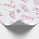 Este papel de embrulho de Natal mostra a palavra alegria soletrada em canas doces. É um design festivo e único, com uma ideia moderna.