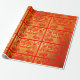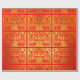 Papel vermelho chinês cortado com dois coelhos e casa tradicional chinesa + lanternas e desejos de Feliz ano novo + papel texturizado de ouro (imagem impressa) como fundo. Design no papel de embrulho.