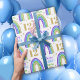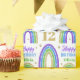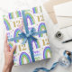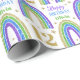 Enrole seus presentes em um papel glamouroso para seu aniversário reluzente. Arco-íris Dourado, verde, azul e roxo com brilho no papel de embalagem de aniversário branco. Personalize o nome e a idade de um 12 personalizado.