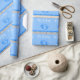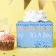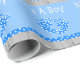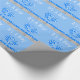 Está um papel de envolvimento com pés do bebê azul, chá de fraldas do menino com estrela de brilho em um chá de fraldas de madeira do fundo com estrela de brilho ligada