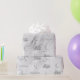 Este é um belo papel de mármore branco e cinza que embrulha presentes de feriado com as palavras "Eid Mubarak" em inglês e árabe, uma lua crescente com motivos islâmicos e pendurando lanternas comemorativas.