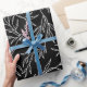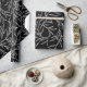 Papel de enrolamento. Uma coleção requintada em tons pretos e brancos. Ramos lisos e graciosos com folhas transformam objetos comuns em objetos especiais