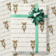 Este papel de embrulho adorável apresenta uma corda de luzes de Natal retroradas, com um gato muito infeliz emaranhado e suspenso deles, sobre um fundo de marfim de sono minimalista.