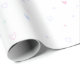 Enrolando papel em uma festa de aniversário mágica com um adorável unicórnio com asas nas nuvens sobre fundo arco-íris.