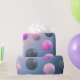 Este elegante papel de embrulho apresenta um design cativante de esferas cor-de-rosa, roxas e cinzas colocadas sobre um fundo macio e gradiente. Perfeito por adicionar um toque de sofisticação moderna a qualquer presente.