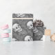 ESQUELETO DA SOCIEDADE DE FOLHA morto. CRÂNIO DE CAVALHEIROS COM SAÍDAS DE OUTONO CORRESPONDEM A DOBRA DE PAPEL, preto e branco....Procure Etiquetas E Bolsas Susan Brack Design