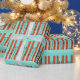 PRESENTE ESQUIS VERMELHOS COM NEVE EM PAPEL DE EMBALAGEM AZ