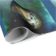 Papel de envolvimento bonito, colorido para o Natal que descreve a estrela de Bethlehem que shinning em cima do mundo com a família santamente, Jesus, Mary e Joseph. Envolva seus presentes com papel religioso este ano, aprecie a estação com papel do presente para combinar a razão para a estação.