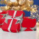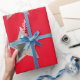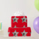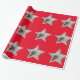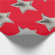 Presente Estrelas de Prata no Papel de Enrolamento Vermelho