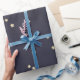 Padrão moderno e uniforme de estrelas de ouro folha a folha com dois fundos da sua escolha, cor-de-rosa ou azul-marinho. Veja na nossa loja mais papel de embalagem adequado para qualquer ocasião.