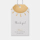 A imagem mostra uma "Etiqueta de agradecimento para Chá de Bebê Boho Ensolarado", uma etiqueta lindamente desenhada, perfeita para expressar gratidão aos convidados no chá de bebê.