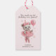 Termine o aniversário da sua pequena bailarina com esta adorável etiqueta de agradecimento de ursinho bailarina! Desenhada em rosa suave com um ursinho de pelúcia em aquarela usando tutu, sapatos de balé e segurando um balão marcado com um “1”, esta etiqueta doce é o toque final perfeito para a festa de 1º aniversário da sua bebê.