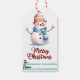 Uma deliciosa etiqueta de Natal mostra um adorável boneco de neve vestindo um chapéu e cachecol aconchegante, espalhando alegria festiva. Perfeito por adicionar um toque pessoal aos presentes de férias.