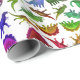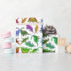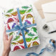 O teste padrão original das belas artes dos dinossauros pré-históricos pequenos coloridos que incluem o triceratops, o brachiosaurus, o rex do tiranossauro e o outro contra um fundo claro pelo artista Carolyn McFann do estúdio de ronrom de dois gatos imprimiu na qualidade, (a cor do fundo pode ser mudada, se desejado) papel de envolvimento customizável. Excelente por feriados, o aniversário dos miúdos ou para alguma ocasião para qualquer um que ama a paleontologia!