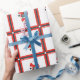 Executando o enrolamento temático de presentes de Natal com Papais noeis correndo em uma pista. Para personalizar editar texto para adicionar o nome do executante.