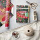 Papel Adorável de Moldagem Apresentando Menina em Vermelho e Branco Decorando Uma Árvore De Natal