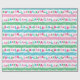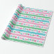 Um pequeno retrato e um pequeno gatinho, este papel de embrulho cômico apresenta terras coloridas de Natal. As terras alternadas soletram "fa la". As cores incluem: azul, vermelho, rosa, verde. Em branco. Vem num rolo contínuo. Perfeito para o Natal/Natal.