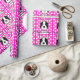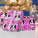 Divertimento e cão bonito do aniversário de Boston Terrier com o papel de embrulho do fundo das bolinhas