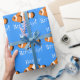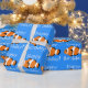 Papel de embrulho lunático e bonito do aniversário dos peixes do palhaço