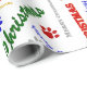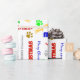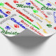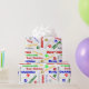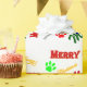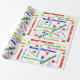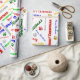 Vermelho colorido, verde, azul e ouro impressão de Natal feliz embrulhando papel com patas de cachorro.