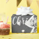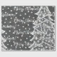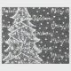 Uma tipografia branca na moda de Natal feliz, com uma árvore de Natal branca e ornamentos e um fundo do céu noturno de cinza repetindo um padrão monocromático para o seu apetite festivo.