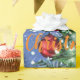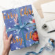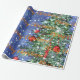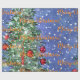 Feliz na moda de Natal, tipografia laranja, com uma árvore de Natal com ornamentos vermelhos e um fundo de neve repetindo padrão design para sua alegria festiva.
