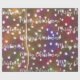 Uma tipografia na moda branca feliz de Natal, com luzes de Natal verdes, amarelas e brancas vibrantes e um design de padrão repetitivo cor de laranja, roxo, vermelho e preto para seu gosto festivo.