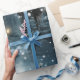 Uma bela cena de inverno com renas e flocos de neve e as palavras "Feliz Natal" em um padrão perfeito. Original e único e seus presentes serão maravilhosos envolvidos neste design estético. Conteúdo genérico.