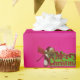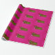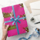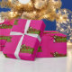 Uma fotografia de Feliz Natal com uma Cane Docente com um fundo cor-de-rosa Que é brilhante e colorida. Isso está no papel de embrulho. Isso foi em Hutchinson Kansas EUA.