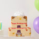 Um pássaro num chapéu segurando uma torta de Ação de Graças. Este design parece realmente eficaz nestes papéis de enrolamento