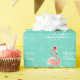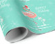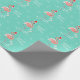 design de na moda com um toque retrorreflector com flamingos rosados festivos vestindo chapéus, estrelas e palmeiras vermelhos decorados com bolhas colocadas sobre um fundo aqua. Um design personalizável para você personalizar com seu próprio texto, imagens e ideias. Uma imagem de arte digital original criada por Quirky Chic.