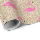 Bonito flamingos cor-de-rosa numa areia de praia decoram esta festa tropical embrulhando papel, fazer perfeito para um aniversário, chá ou qualquer ocasião especial de Verão.