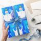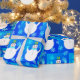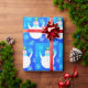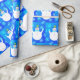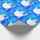 Presentes especiais de férias embrulhando papel com um bonzinho de neve e flocos de neve felizes.