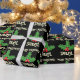 O holly personalizado deixa papel de embrulho de Natal. Whimsical Holly, folhas e bagas design. Preto, verde e vermelho Feliz Natal para crianças e adultos. Impressão de padrões de Férias Reproduzíveis com mensagem de saudação de épocas personalizadas. Personalizável com o nome de adulto ou filho. Cor de fundo preta ou personalizada. Adicione seu próprio nome e desejos. Provisão de festas para ocasiões festivas.