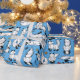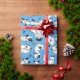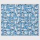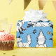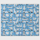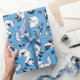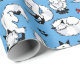 Raposas árticas, atacando e jogando com borboletas, em um fundo azul.